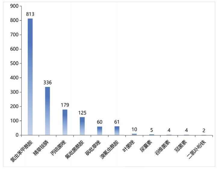 截至 2026年1月,国内热门农药产品登记情况(单位 :个)