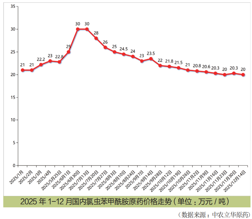 2025 年,对于农化界的“明星产品”氯虫苯甲酰胺而言,是极不平凡的一年。这一年,它经历了从价格低谷到恐慌性飙升,再到理性回归的过山车式行情 ;也在产能扩张与登记火热的喧嚣中,提前步入了竞争红海。岁末回首,氯虫苯甲酰胺产业在动荡中深刻重塑,企业的竞争重心正从单纯的产能比拼,转向更深层次的差异化生存。